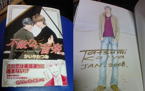 かいやたつみちゃんに本日発売の新刊「不敵ない音楽」をいただきました。